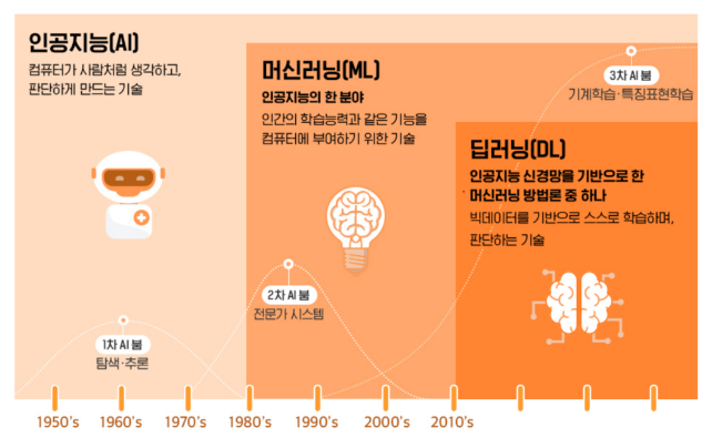 인공지능(AI) ⊃ 머신러닝(Machine Learning) ⊃ 딥러닝 (Deep Learning)