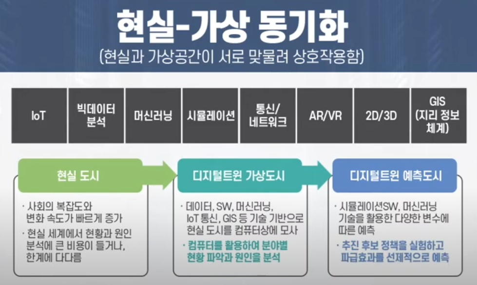 디지털 트윈(Digital Twin)은 물리적인 객체나 시스템을 디지털 세계에 동일하게 복제한 가상 모델을 의미. 이 기술은 실제 세계의 데이터를 실시간으로 반영하여 가상 모델을 업데이트하고, 이를 통해 다양한 분석과 예측을 가능하게 한다.